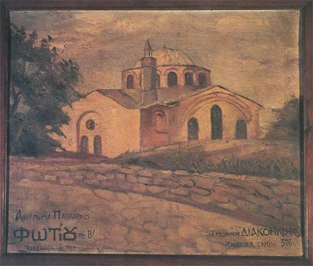 φωτισμένη ἀπὸ μίαν ἐλάχιστη λάμπα σὰ δαχτυλίθρα