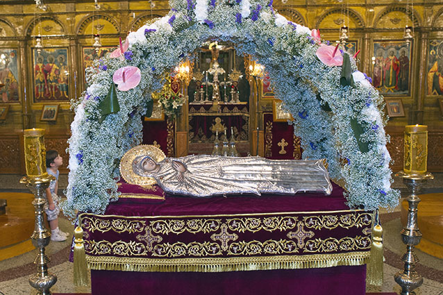 Πάνω στον τάφο της χτίστηκε μεγαλοπρεπής ναός, που αποδίδεται στην Αγία Ελένη. Μετά την καταστροφή του, ο αυτοκράτορας του Βυζαντίου Μαρκιανός (450-457) με τη δεύτερη σύζυγό του Πουλχερία έχτισαν νέο ναό, που υπάρχει μέχρι σήμερα. Η Κοίμηση της Θεοτόκου εορταζόταν αρχικά στις 13 Αυγούστου και από το 460 στις 15 Αυγούστου. Μεταξύ της Ορθόδοξης και της Καθολικής Εκκλησίας υπάρχει δογματική διαφορά σχετικά με την Κοίμηση της Θεοτόκου. Η Καθολική Εκκλησία πιστεύει στο δόγμα της ενσώματης ανάληψης της Θεοτόκου (Assumptio Beatae Mariae Virginis), που οριστικοποιήθηκε με την αποστολική εγκύκλιο του Πάπα Πίου IB’ «Munificentissimus Deus» (1 Νοεμβρίου 1950). Αντίθετα, η Ορθόδοξη Εκκλησία κάνει λόγο πρώτα για Κοίμηση της Θεοτόκου, δηλαδή πραγματικό θάνατο (χωρισμό ψυχής και σώματος) και στη συνέχεια για μετάσταση της Θεοτόκου, δηλαδή ανάσταση (ένωση ψυχής και σώματος) και ανάληψή της κοντά στον Υιόν της.
