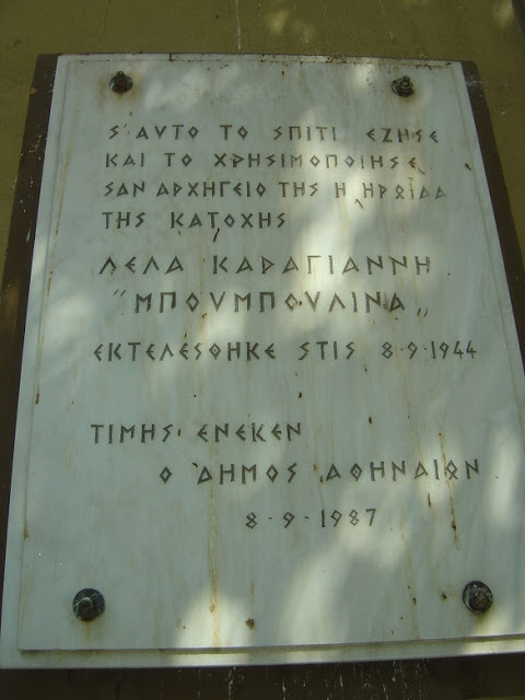 Αναμνηστική πλάκα στην oικία της Λέλας Καραγιάννη