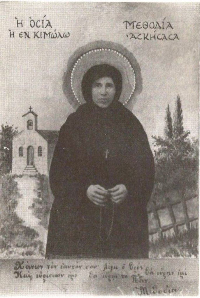 Στους δύο τελευταίους αιώνες, οι Κυκλάδες έδωσαν τέσσερις άγιες μορφές στην Εκκλησία μας: τον Όσιο Νικόδημο τον Αγιορείτη από τη Νάξο, τον Όσιο Αρσένιο από την Πάρο,την Οσία Πελαγία από την Τήνο και την Οσία του 20ού αιώνα Μεθοδία, από την Κίμωλο. Η επίσημη αγιοποίησή της έγινε από το Οικουμενικό Πατριαρχείο με την πράξη 499 στις 17 Ιουνίου 1991. Η μνήμη της εορτάζεται στις 5 Οκτωβρίου.
