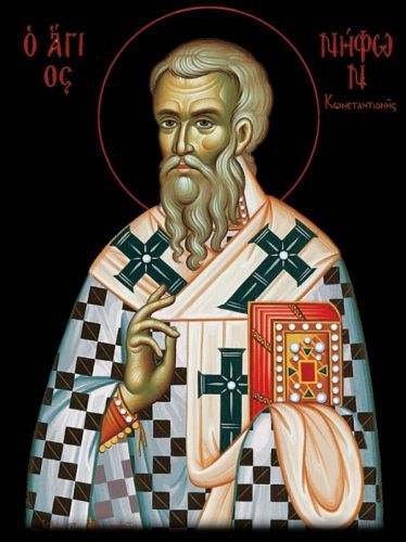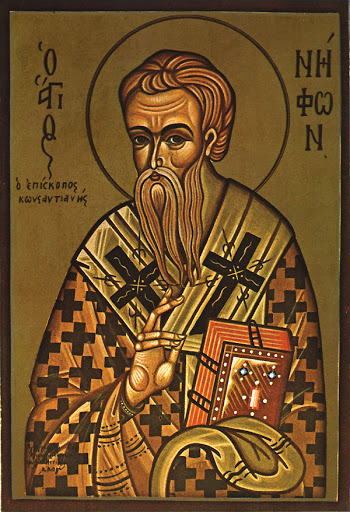 Ο Άγιος Νήφων υπήρξε Ιεράρχης της Αλεξανδρινής Εκκλησίας του δ’ αιώνα μ.Χ., που αξιώθηκε πολλές θείες οπτασίες και που ο Μέγας Αθανάσιος μαρτυρεί την αγιότητά του. Ο Αγαπητός, πατέρας του αγίου, ήταν ο πρώτος άρχοντας της Αλμυροπόλεως της Αιγύπτου. Ο άγιος Νήφων πήγε σε ηλικία οκτώ ετών στην Κωνσταντινούπολη για να σπουδάσει. Μαζί με τον πόθο για μόρφωση παρουσίαζε και μεγάλη ευλάβεια προς τον Θεό. Παρασύρθηκε όμως σε μια ταραγμένη και άσωτη νεανική ζωή εξ αιτίας της απειρίας του. Οι φίλοι του τού θύμιζαν την προηγούμενη χριστιανική του ζωή, αλλά ο Νήφωνας παρέμενε στην αμαρτία.