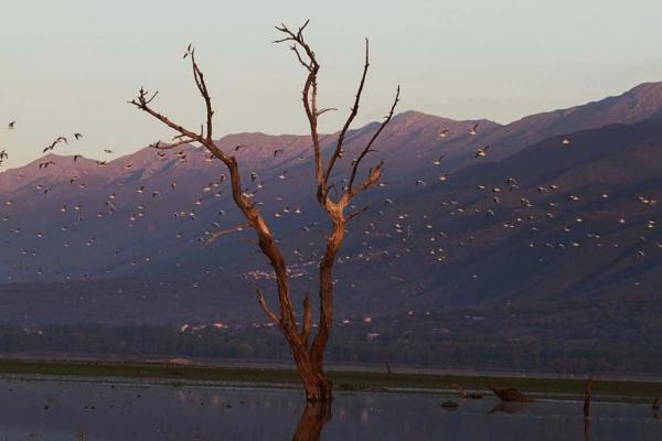 Η Κερκίνη είχε εκείνη την ώρα μια αύρα μελαγχολική. Ο ήλιος έδυε και πάνω στο νερό καθρεφτίζονταν ροδοκόκκινα και κίτρινα σύννεφα, σαν αδρές πινελιές πάνω σε πίνακα αφηρημένης ζωγραφικής. Στον ουρανό διέκρινα τις μεγαλοπρεπείς σκιές ενός κοπαδιού πελεκάνων που έψαχναν το μέρος που θα κούρνιαζαν για τη νύχτα. Οι πελεκάνοι φτερούγιζαν αμέριμνοι, όπως κάνουν εδώ και πολλές χιλιάδες χρόνια. Η λίμνη έδινε ένα ζωντανό παράδειγμα αγαστής συνύπαρξης. Τριακόσια είδη πουλιών, τριάντα είδη ψαριών, δεκατέσσερα είδη ερπετών και άπειρα έντομα και φυτά συμβιώνουν αρμονικά σε έναν αέναο κύκλο ζωής. Οι εποχές προσπερνούν η μία την άλλη και σκορπίζουν παντού ομορφιά. Ακούω από μακριά το βραχνό απόηχο του κρωξίματος των ερωδιών και χαμογελώ.