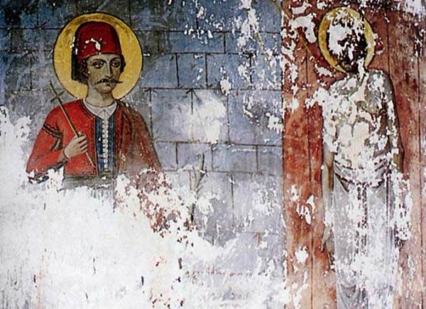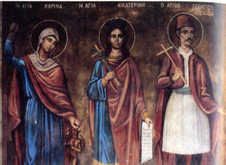 α. Οι Άγιοι Γεώργιος και Ιωάννης οι εξ Ιωαννίνων από την Ι.Μ. Σιουτίστας Ιωαννίνων (fdathanasiou.wordpress.com), β. Ο Άγ. Γεώργιος ο εξ Ιωαννίνων, τοιχογραφία έτους 1918 από την Ι.Μ. Προφ. Ηλία του Νησιού Ιωαννίνων (fdathanasiou.wordpress.com)