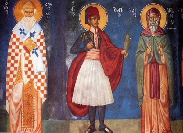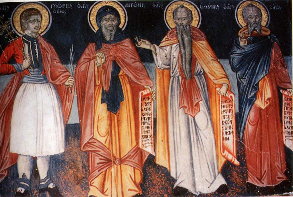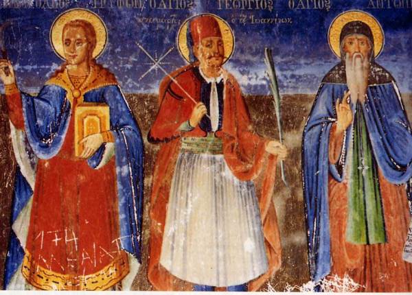 α. Οι Άγιοι Γεώργιος ο εξ Ιωαννίνων, Αντώνιος ο Μέγας, Σάββας ο Ηγιασμένος και Ευθύμιος ο Μέγας, από την Ι.Μ. Αγ. Γεωργίου Μπισδουνίου Ιωαννίνων (fdathanasiou.wordpress.com), β. Οι Άγιοι Τρύφων, Γεώργιος ο εξ Ιωαννίνων και Αντώνιος ο Μέγας, από την Ι.Μ. Προφ. Ηλία Ηλιοβουνίου Πρεβέζης (fdathanasiou.wordpress.com)