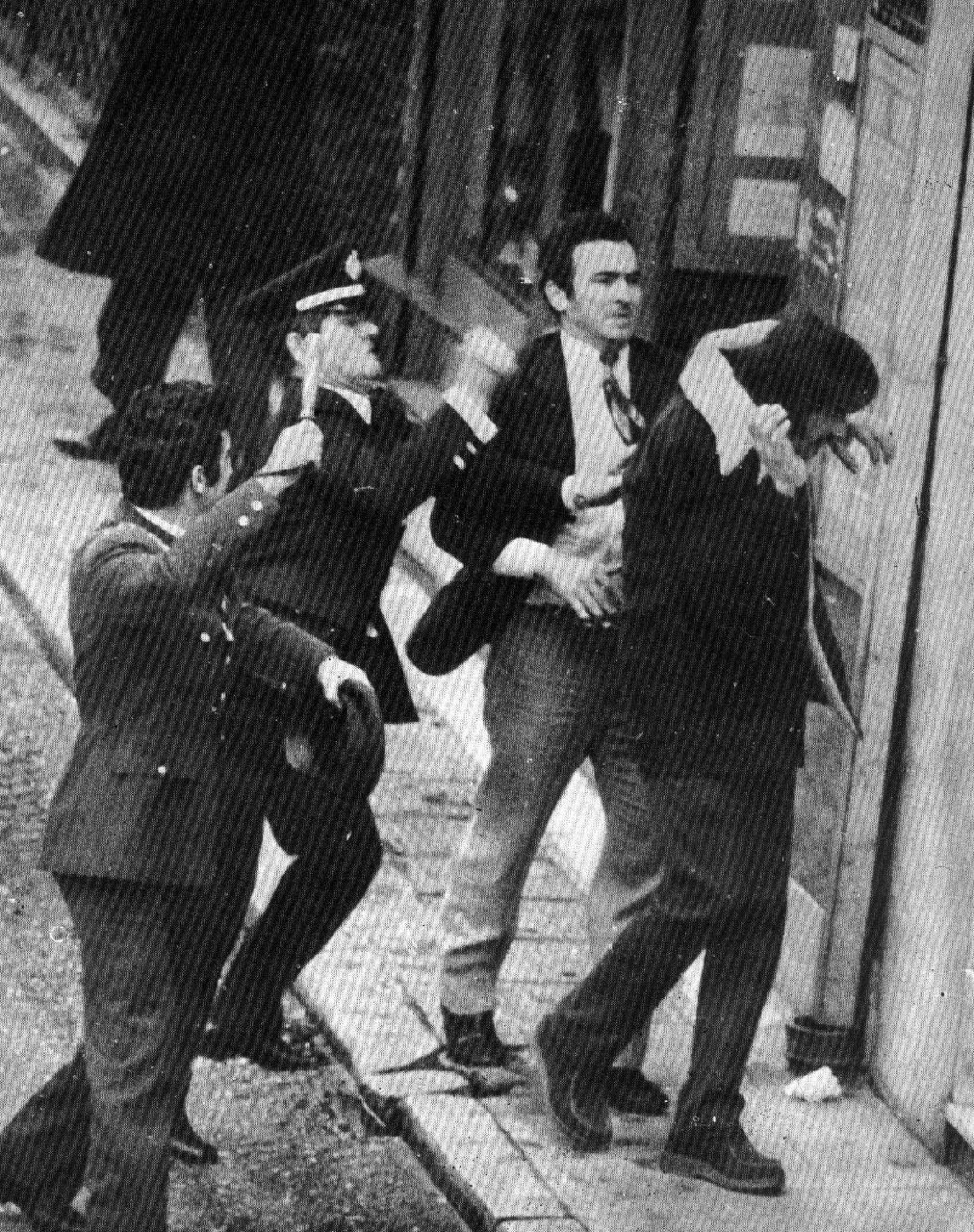 Ο Τούντας άρχισε άμεσα τις επαφές για την αποχώρηση των φοιτητών. Ζητά από τους φασίστες να μείνουν ήσυχοι, να μη φωνάζουν συνθήματα και να μην προκαλούν, χωρίς όμως να τους πείσει. Ταυτόχρονα έρχεται ο εισαγγελέας Κυριαζής και ο διευθυντής αστυνομίας Δασκαλόπουλος που αναφέρουν στον Τούντα ότι δεν αναλαμβάνουν την ευθύνη να αδειάσουν το κτήριο. Τις επαφές με τους φοιτητές αναλαμβάνει ο κοσμήτορας της Φιλοσοφικής Μπουρπουλίδης. Τελικά, γύρω στις 5:15 ανοίγει η πόρτα της οδού Σίνα και αρχίζουν να βγαίνουν ομαδικά οι φοιτητές. Στο μεταξύ οι «αντιφρονούντες» φασίστες τρέχουν προς την πλευρά εκείνη του κτηρίου και επιτίθενται εναντίον των φοιτητών, που βγαίνουν τελευταίοι. Επεμβαίνει η αστυνομία για να διαλύσει τους φοιτητές. Στα επεισόδια που ακολουθούν δέρνονται μαζί με τους φοιτητές και πολλοί «αντιφρονούντες» φασίστες. Ενώ συμβαίνουν αυτά τα επεισόδια, ομάδα φοιτητών συγκροτεί διαδήλωση ως την Ομόνοια.