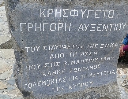 Την 1η Μαρτίου του 1957, οι βρετανοί επανήλθαν στην περιοχή του Μαχαιρά αναζητώντας επίμονα τον Γρηγόρη Αυξεντίου. Μετά από προδοσία ανακαλύπτουν το κρησφύγετό του, σε απόσταση ενός χιλιομέτρου περίπου από το μοναστήρι. Αμέσως, απόσπασμα από 60 βρετανούς στρατιώτες και αξιωματικούς περικύκλωσε το κρησφύγετο, ενώ ο επικεφαλής του βρετανικού αποσπάσματος, ανθυπολοχαγός Μίντλεττον, πλησίασε την είσοδο της σπηλιάς και φώναξε: «Ρίξε τα όπλα σου και παραδώσου, αλλιώς θα επιτεθούμε», αλλ’ έλαβε την υπερήφανη απάντηση «Μολών λαβέ».
