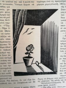 Πέτρος Χάρης, «Η τριανταφυλλιά», ξυλογραφία Α. Τάσσου (σ. 71)