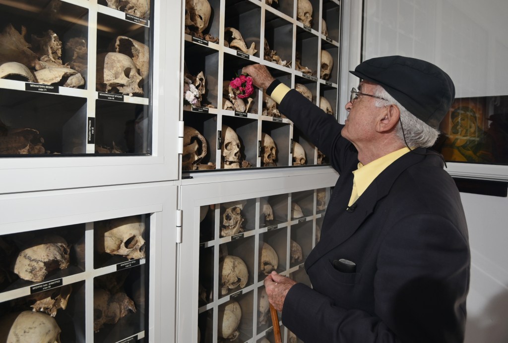 Πάνω στη μαρμάρινη πλάκα που είναι χαραγμένα τα ονόματα των γονιών του «Νικόλαος Σφουντούρης (ετών 45) και Βασιλική Σφουντούρη (ετών 35)», άφησε ένα λουλούδι. Στη συνέχεια, επισκεφθήκαμε μαζί το σχολείο όπου πήγαινε, μόνο και μόνο για ν’ απασχολείται. Τον έπαιρναν μαζί τα μεγαλύτερα παιδιά. Εκείνα διάβαζαν και ο μικρός Αργύρης, ζωγράφιζε και έπαιζε. Όλες οι ωραίες του αναμνήσεις, χάθηκαν μέσα σε μία ημέρα. «Δεν θυμάμαι τίποτα από τα παιδικά μου χρόνια πριν από τη σφαγή. Όλες μου οι μνήμες εξαλείφθηκαν με τη σφαγή. Ήταν τόσο έντονες οι εικόνες, που λέω σήμερα ότι έγιναν “τατουάζ” στην ψυχή μου. Χάθηκαν οι χαρούμενες εικόνες. Δεν είμαι σίγουρος, αν θυμάμαι, τα πρόσωπα των γονιών μου απ’ όταν ζούσαν ή από τις λιγοστές φωτογραφίες της γιαγιάς μου! Γιατί μαζί με το σπίτι μας, κάηκαν και όλες οι φωτογραφίες!», λέει ο Αργύρης Σφουντούρης.