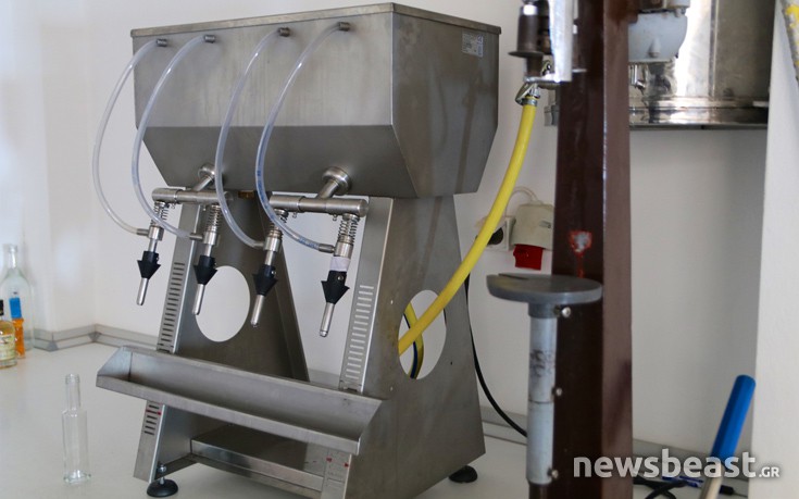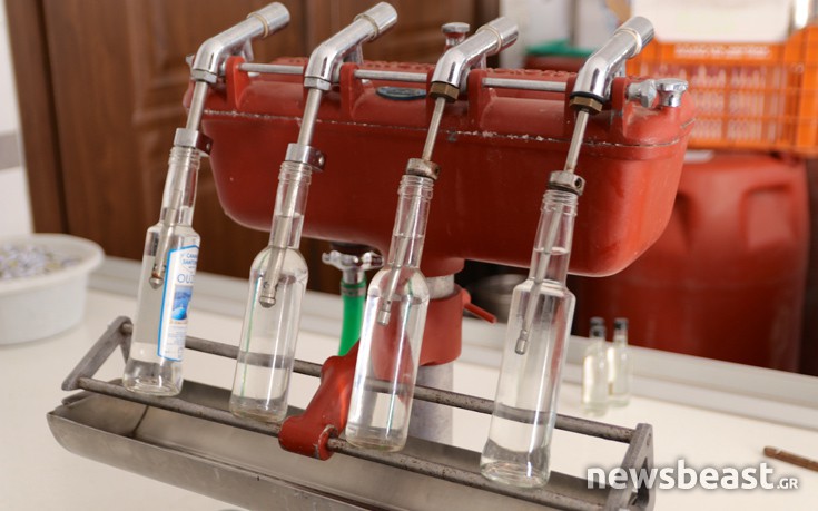 Πώς γίνεται όμως η παραγωγή του; «Παίρνουμε καθαρή αλκοόλη γεωργικής προέλευσης την οποία την τροφοδοτεί το κράτος. Εμείς παίρνουμε την αλκοόλη και την αρωματίζουμε. Τη βάζουμε στο καζάνι και προσθέτουμε το γλυκάνισο και διάφορα αρωματικά βότανα. Γίνεται ο βρασμός και έτσι παίρνεις τα αρωματικά που έχεις προσθέσει. Ο ατμός υγροποιείται και παίρνουμε το αποτέλεσμα που θέλουμε», εξηγεί ο Λουκάς, δείχνοντας παράλληλα τον σχετικό εξοπλισμό.