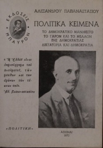 Όταν ο Αλέξανδρος Παπαναστασίου, στις 12 Φεβρουαρίου 1922, διατύπωνε το ιστορικό «Δημοκρατικό Μανιφέστο», έγραφε: «Η Ελλάς είναι δημιούργημα του πνεύματος, των μόχθων και των αγώνων των τέκνων της. Δεν είναι βασιλικόν τιμάριον …». Την ίδια ημέρα, ασκήθηκε ποινική δίωξη και συνελήφθησαν ο Παπαναστασίου και άλλοι έξι πολιτευόμενοι, που υπέγραφαν το μανιφέστο. Κατηγορία: Εξύβρισις του βασιλέως και εσχάτη προδοσία! Τη μεθεπομένη ο Παπαναστασίου δήλωνε από τα κρατητήρια: «Όπως κατήντησε το πράγμα, η θέσις παντός τιμίου πολιτευομένου θ’ αρχίση να είναι εις την φυλακήν!».