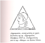 Ο Παπαναστασίου είχε στενή φιλική σχέση με τον ζωγράφο Κωνσταντίνο Παρθένη, ο οποίος παρ’ ότι απόκοσμος είχε θρησκευτική προσήλωση στη δημοκρατική ιδεολογία και θαύμαζε απεριόριστα τον Παπαναστασίου. Έτσι, όταν ιδρύθηκε η «Δημοκρατική Ένωση» και συστάθηκαν οι Δημοκρατικοί Σύλλογοι, ο Παρθένης είχε κιόλας ετοιμάσει το Σήμα της Δημοκρατίας: ένα γυναικείο κεφάλι μέσα σε ένα τρίγωνο, που στάθηκε το λαλούν σύμβολο για τη Δημοκρατία και, βέβαια, από τότε σφράγισε τη δημοκρατική κίνηση του Παπαναστασίου.