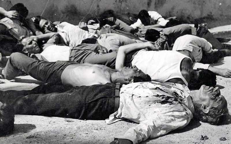 Η πλατεία της Οσίας Ξένης με τα πτώματα των φονευθέντων κατοίκων