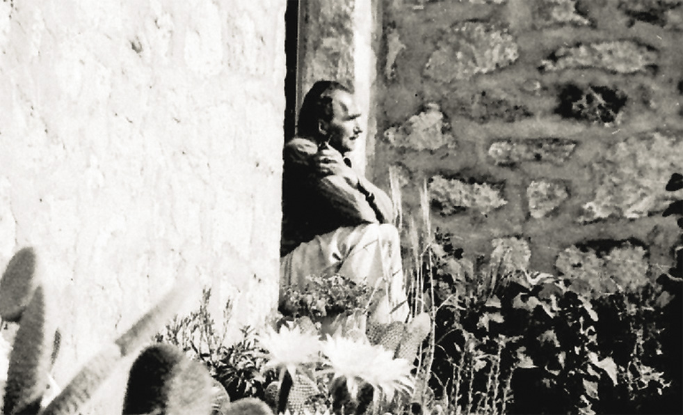 Ο Νίκος Καζαντζάκης στην αυλή του σπιτιού του στην Αίγινα