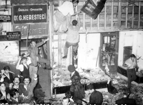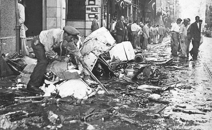 Την ίδια ώρα στην Τουρκία ανεκοινώθη πως «ανατινάχθηκε από τους Έλληνες το σπίτι του Κεμάλ στη Θεσσαλονίκη» και δημοσιεύθηκαν φωτογραφίες από άσχετο κτήριο, όπου εμφανίζονταν ερείπια πλήρως κατεστραμμένου κτηρίου χωρίς στέγες και παράθυρα και, με πυκνούς καπνούς να το περιβάλλουν πανταχόθεν. Μέσα σε μία ώρα από την δημοσιευθείσα είδηση στον τουρκικό Τύπο, ήτοι το απόγευμα της 6ης Σεπτεμβρίου του 1955, πλήθος φανατισμένου όχλου που ήταν οργανωμένος με ρόπαλα και σιδερένιους λοστούς στα χέρια, συγκεντρώθηκε μπροστά στο μνημείο του Κεμάλ στην πλατεία Ταξίμ της Πόλης. Παράλληλα άρχισαν να καταφθάνουν φανατικοί εθνικιστές με φορτηγά και πλοιάρια από τις γύρω επαρχίες. Μέσα σε αυτή την εκρηκτική κατάσταση οι Τούρκοι φοιτητές φώναζαν «Η Κύπρος ήταν και είναι τουρκική» και αμέσως μετά «Σπάστε τα καταστήματα των Ρωμιών».