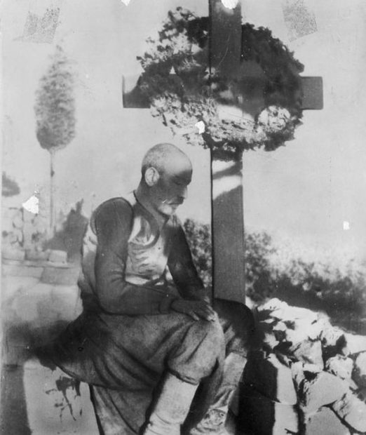 Ο διασωθείς Βιαννίτης Χρηστάκης σε τόπο εκτελέσεων (αρχείο Κ. Κουτουλάκη)