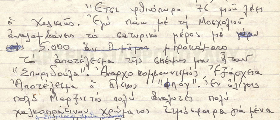 Χειρόγραφο από το αρχείο του Παύλου Σιδηρόπουλου