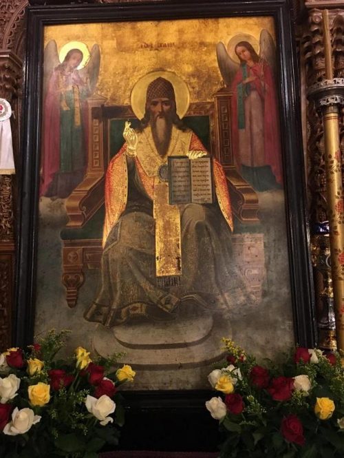 Τῷ πόθῳ Χριστοῦ τρωθεὶς, Ἱερώτατε, τὸν νοῦν πτερωθείς, τῇ αἴγλῃ τοῦ Πνεύματος, πρακτικὴ θεωρία, τὴν πρᾶξιν εὗρες θεόπνευστε, θυσιαστήριον θεῖον γενόμενος, αἰτούμενος πᾶσι θείαν ἕλλαμψιν.