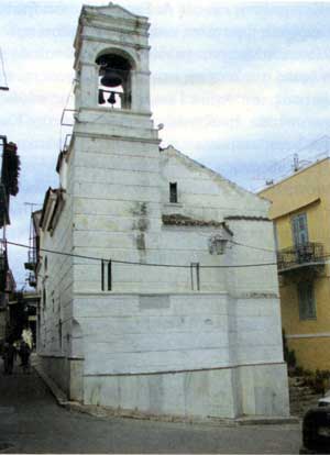 Ο ναός, ο οποίος στεγάζει σήμερα το ιερό σκήνωμα του αγίου, κτίστηκε το 1589 και έχει ρυθμό μονόκλιτης βασιλικής. Το ψηλό και πυργωτό καμπαναριό του, ως συμπλήρωμα του ναού, κτίστηκε το 1620. Το σημερινό τέμπλο του ναού, κατασκευάστηκε από μάρμαρο της Πάρου, το 1864 και είναι έργο του αυστριακού αρχιτέκτονα Μάουερς. Η ουρανία είναι ζωγραφισμένη από τον Κερκυραίο ζωγράφο Νικόλαο Ασπιώτη, το 1852 μ.Χ., ενώ οι εικόνες του τέμπλου είναι φτιαγμένες από τον επίσης Κερκυραίο ζωγράφο, Σπύρο Προσαλένδη.
