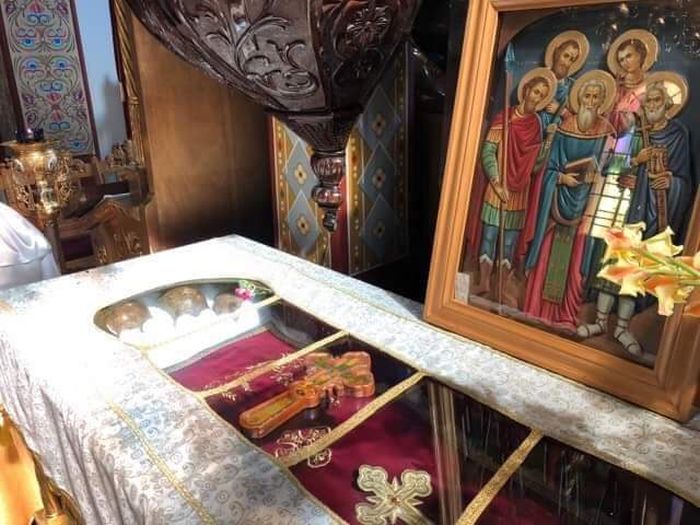 Οι δύο αγιογράφοι τα χρειάσθηκαν, γιατί κατάλαβαν πως είχαν να κάνουν με Αγίους, οι οποίοι τους είπαν και τούτο: “Να επιστρέψετε πάραυτα ν’ αγιογραφήσετε το Κυριακό και ό,τι σας δώσουν οι πατέρες, να το πάρετε λέγοντας “να ‘ναι ευλογημένο”· Τίποτ’ άλλο. Επίσης στον αριστερό χορό ν’ αγιογραφήσετε τους Πέντε Μάρτυρας Ευστράτιον, Αυξέντιον, Ευγένιον, Μαρδάριον και Ορέστην”.