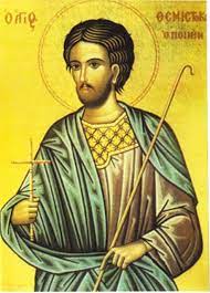 Βόσκων τοὺς σοὺς ἄρνας ἐν τοῖς δρυμοῖς, Μύρων τῆς Λυκίας, ὡμολόγησας εὐθαρσῶς, τοῦ Χριστοῦ τὴν πίστιν, τρισμάκαρ Θεμιστόκλεις, καὶ ἐξ ὀξέων ἥλων, ξέσεις ὑπέμεινας.