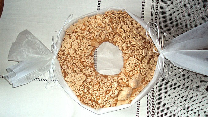 Τελειώνοντας τα κεντήματα, ετοιμάζουν τα ταψιά με τα κουλούρια, που είναι τρία για τη μάνα του γαμπρού και ένα για τη μάνα της νύφης. Η μάνα του γαμπρού φτιάχνει ένα κουλούρι για τον γαμπρό, ένα για τον κουμπάρο και ένα της εκκλησίας. Όταν ανέβει το ζυμάρι το βάζουν στα ταψιά και τοποθετούνε τα κεντήματα με ευλάβεια και ευχές.