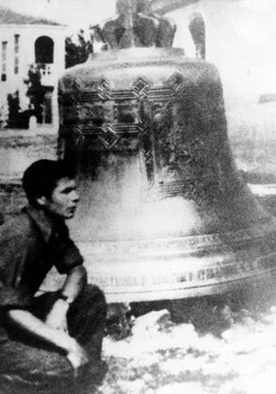 στον Άγιο Γεώργιο, και δεξιά: Η καμπάνα όταν ακόμα κοσμούσε