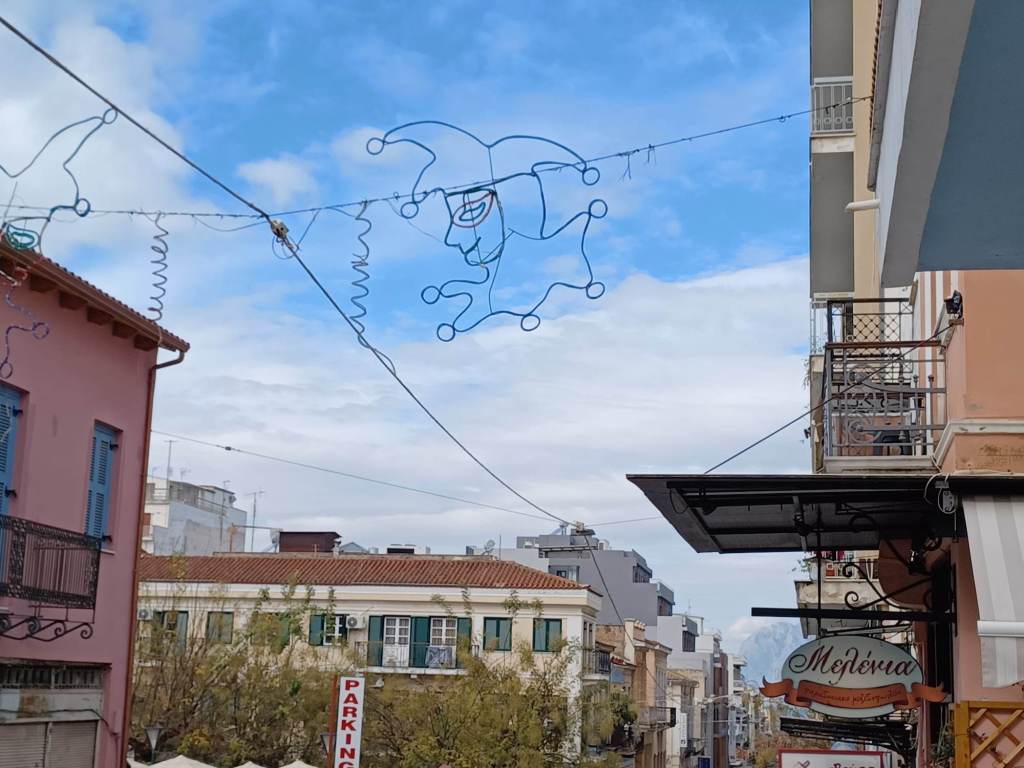 Πρωί κι η πόλη ξυπνά με γρήγορο ρυθμό… Ένα ένα τα μαγαζιά της εμπορικής οδού Ρούφου Κανακάρη ανοίγουν τις πόρτες τους και ο δρόμος παίρνει ζωή. Μυρωδιά από ζεστές απίθανες πιτούλες κάθε είδους κατακλύζει τη γωνία με Αράτου. Ακριβώς δίπλα στο εμβληματικό σχολικό συγκρότημα του Λυκείου Κωστή Παλαμά (Το Παράρτημα), ο πράσινος αστροναύτης ανασηκώνεται από τον καναπέ του και χαιρετά!