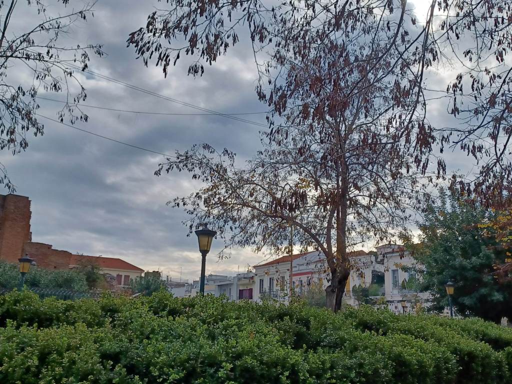 Η Πλατεία 25ης Μαρτίου στην Άνω πόλη, κάτω από έναν μολυβένιο ουρανό