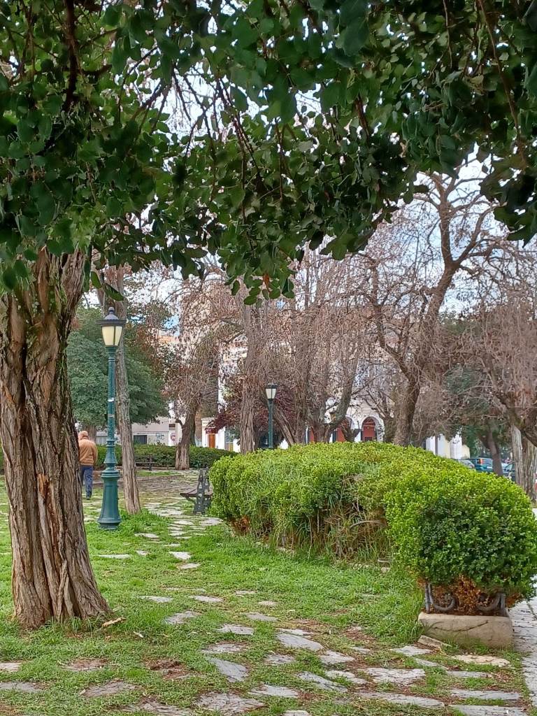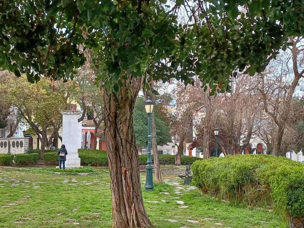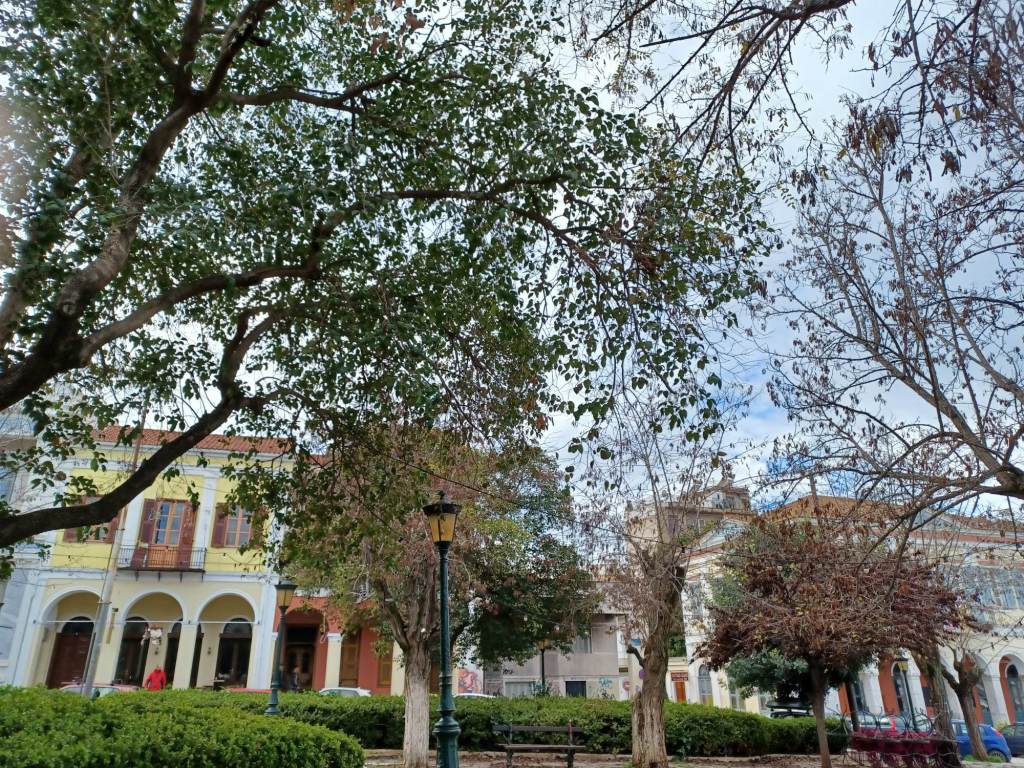 Η φιλόξενη και καταπράσινη Πλατεία Όλγας, γωνία Κολοκοτρώνη και Μαιζώνος στο κέντρο