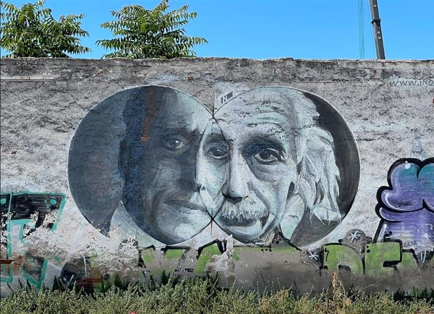 Γκράφιτι στο Γκάζι με τις μορφές του Καραθεοδωρή και του Αϊνστάιν