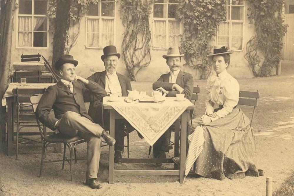 Ο Κωνσταντίνος Καραθεοδωρή (αριστερά) με τον πατέρα του Στέφανο, τον γαμπρό του Γιώργο και την αδερφή του Τζούλια στο Κάρλσμπαντ της Τσεχίας το 1898