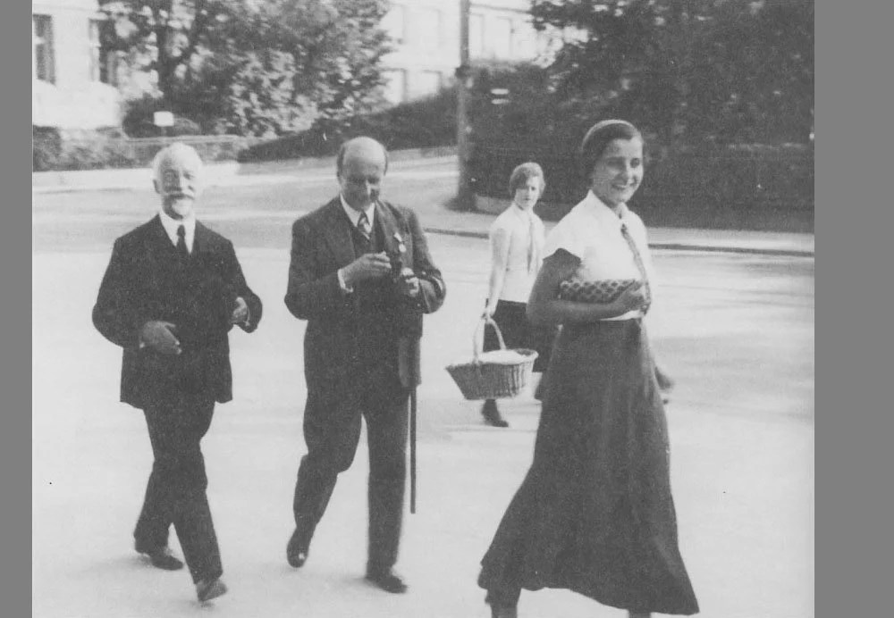 Με την κόρη του Δέσποινα και τον φίλο του μαθηματικό Elia Cartan, στη Ζυρίχη το 1932