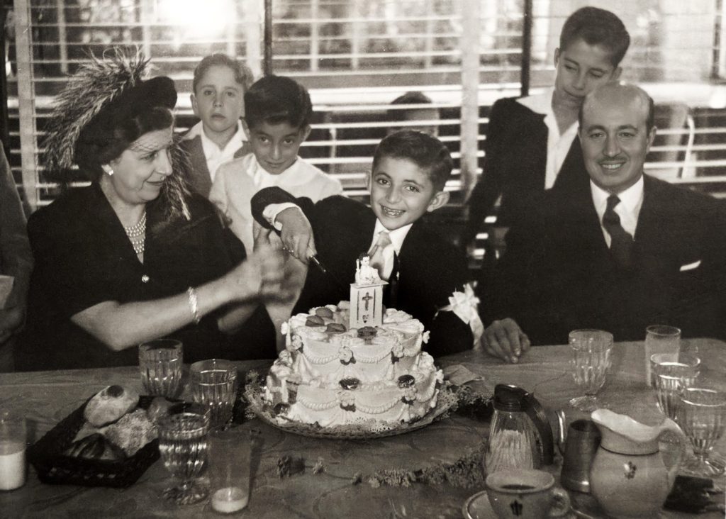 O Μάριο Μολίνα σε παιδική ηλικία με τους γονείς του, γιορτάζοντας τα γενέθλιά του στην Πόλη του Μεξικού το 1950