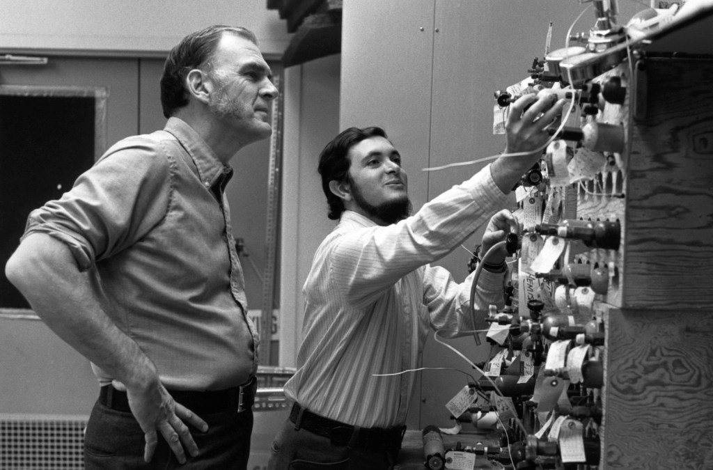 Ο Μάριο Μολίνα (δεξιά) και ο συνεργάτης του χημικός της ατμόσφαιρας Frank Sherwood Rowland (αριστερά) το 1975, στο εργαστήριο του University of California, Irvine