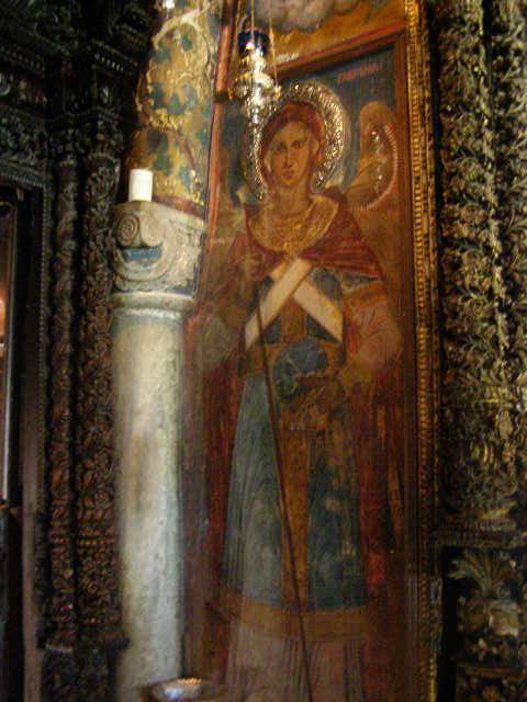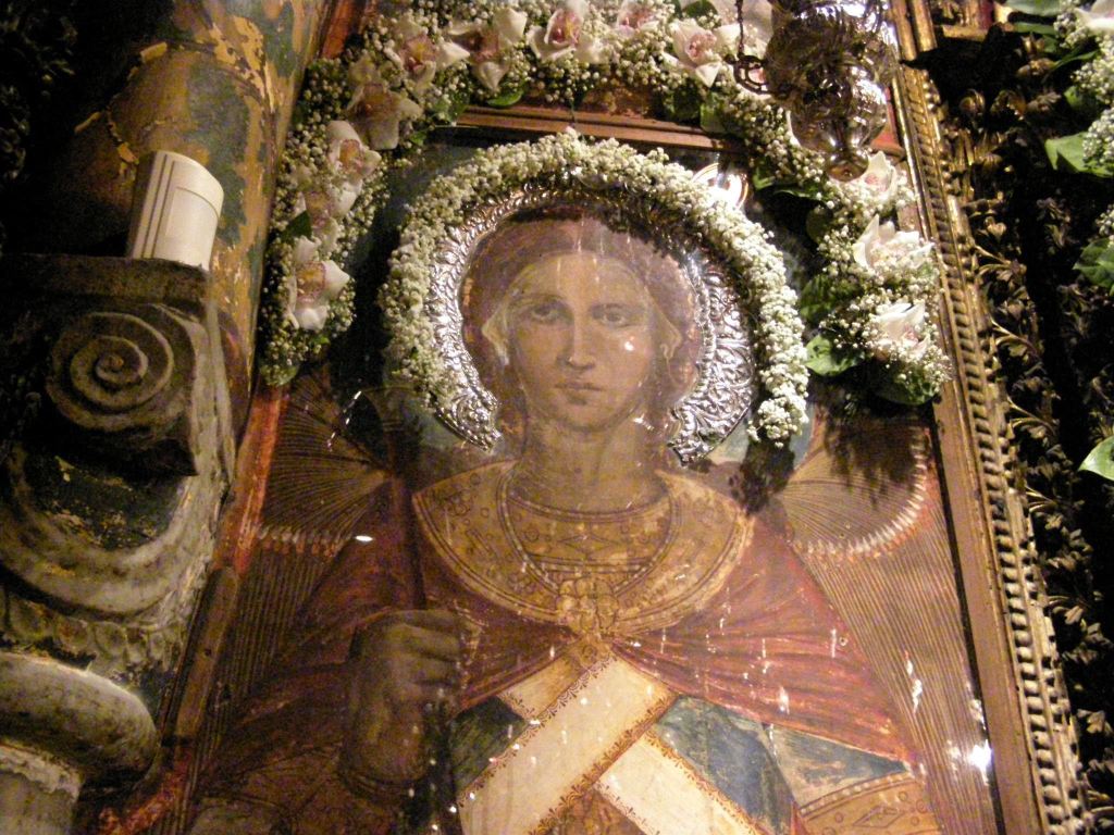 Ο Αρχάγγελος Γαβριήλ, λεπτομέρεια ολόσωμης εικόνας από τον ιερό ναό Αρχαγγέλου Μιχαήλ Πανορμίτη, στη Σύμη