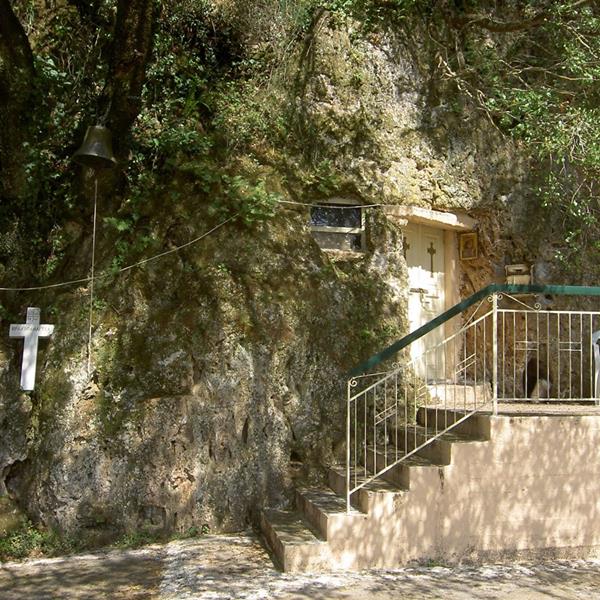 Η σπηλίτσα βρίσκεται σε ύψος 8-10 μ. από τη βάση του βράχου. Τα παλιότερα χρόνια η ανάβαση στον μικρό ναό γινόταν από μία σκάλα που έγινε, τελευταία, τσιμεντένια. Στη βάση του βράχου και ακριβώς κάτω από το ιερό, αναβλύζει πηγή με άφθονο, δροσερό ιαματικό αγίασμα, που θεραπεύει τις αρρώστιες και φέρνει ευλογία σε όσους με πίστη προσέρχονται να προσκυνήσουν και να το πάρουν μαζί τους. Στις άκρες και πάνω από τον βράχο φυτρώνουν «νυχάκια» που μαζεύονται από τις κοπέλες και τοποθετούνται στο «γιούκο» των προικιών τους, για να ευωδιάζουν και να τα προστατεύουν από τον σκόρο.