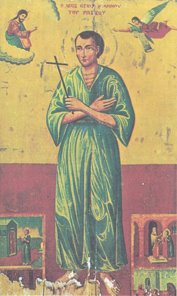 Φερωνύμως ἡ κλῆσίς σου γέγονε χαριτώνυμος, Ὅσιε Πάτερ∙ ὡς γὰρ ὁ θεῖος Βαπτιστής, μεταξὺ τοῦ Ἰουδαϊκοῦ λαοῦ ἐχαριτώθη, καὶ παρὰ Χριστοῦ σαφῶς ἐμαρτυρήθη, οὕτω καὶ σὺ ὁ ὁμώνυμος αὐτοῦ καὶ μιμητής, μεταξὺ τοῦ ματαιόφρονος λαοῦ, χάριν οὐρανόθεν εἴληφας, τῇ θεαρέστῳ πολιτείᾳ σου, ὦ Ἰωάννη∙ διὸ μὴ παύσῃ πρεσβεύων ὑπὲρ ἡμῶν τῶν πιστῶς ἐπιτελούντων, τὴν ἁγίαν σου σοφὲ πανήγυριν.