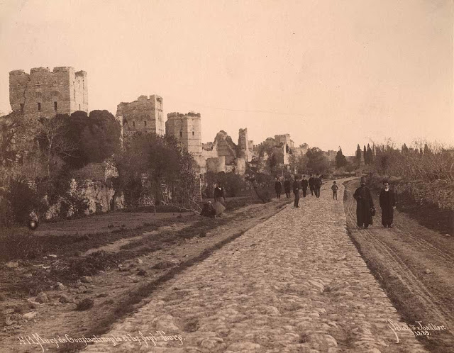 Τα χερσαία τείχη της Πόλης σε παλαιά φωτογραφία