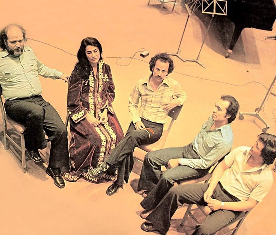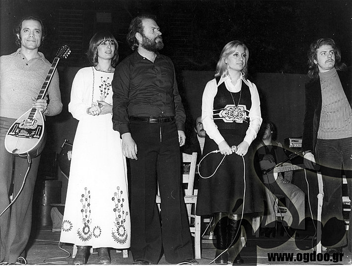 Με τους Λάκη Χαλκιά, Λιζέτα Νικολάου, Βίκυ Μοσχολιού και Παύλο Σιδηρόπουλο, το 1974