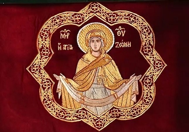 Η Τίμια Ζώνη της Παναγίας όπως φυλάσσεται στην Ιερά Μονή Βατοπαιδίου Αγίου Όρους