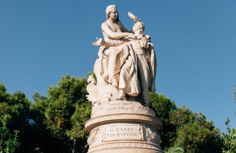 Ο ανδριάντας του Λόρδου Βύρωνα στον Κήπο των Ηρώων στο Μεσολόγγι