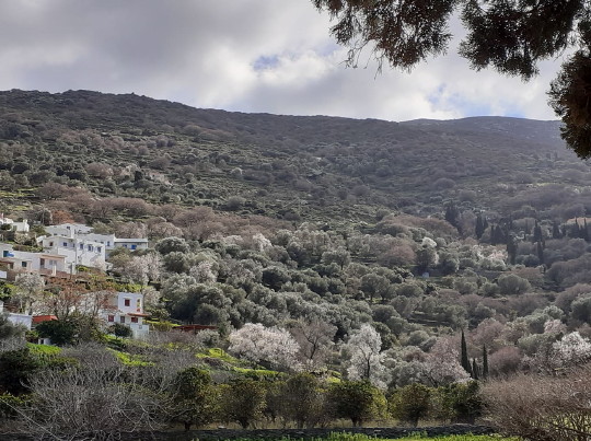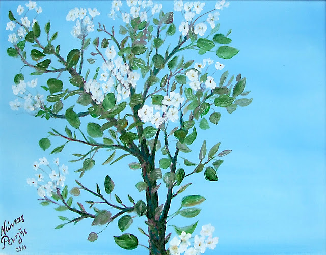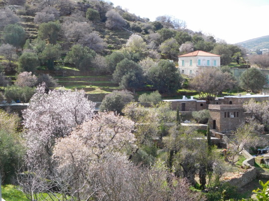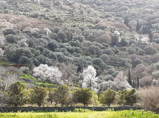 Τριγύρω της, πάνω στη γη, που μόλις έδινε τις πρώτες δροσερές πινελιές μιας καταπράσινης χλόης, ένα χαλί απ’ τα πεσμένα ανθάκια της αμυγδαλιάς συμπλήρωνε μοναδικά κείνο το θαύμα που αντικρίζαμε.. Μια εικόνα ασύγκριτης ομορφιάς που συνάμα έγινε μέσα μου και ένα απ’ τα πρώτα διδάγματα για το αποτύπωμα του τοπίου στην ανθρώπινη ψυχή και για την ξεχωριστή ικανότητα της φύσης να μας μεταφέρει, μέσα από τα πλάσματά της και τις εικόνες της, από αυτόν τον κόσμο της φθοράς, στις πιο λεπτές εκφράσεις του πνεύματος, της ομορφιάς, της αισθητικής απόλαυσης και της ευγένειας..