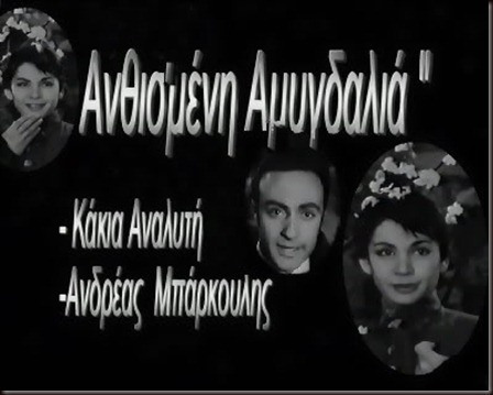 Οι καρποί της αμυγδαλιάς θα πρωταγωνιστούσαν ωστόσο και σε μία ακόμα πολυαγαπημένη ελληνική ταινία της «χρυσής» εποχής του Ελληνικού Κινηματογράφου. «Στάσου, μύγδαλα» ήταν η αξέχαστη φράση που απευθύνει ο Γιάννης Βόγλης στη συμπρωταγωνίστριά του Ανν Λόνμπεργκ, κυνηγώντας τη στην ταινία «Κορίτσια στον ήλιο», που γυρίστηκε στην Άνδρο και στη Σαλαμίνα, το 1968, σε σκηνοθεσία Βασίλη Γεωργιάδη, σενάριο Ιάκωβου Καμπανέλλη και με την υπέροχη μουσική του Σταύρου Ξαρχάκου. Η συγκεκριμένη σκηνή ωστόσο είναι η μόνη της ταινίας, η οποία δεν γυρίστηκε στα δύο νησιά, αλλά στην Αθήνα!
