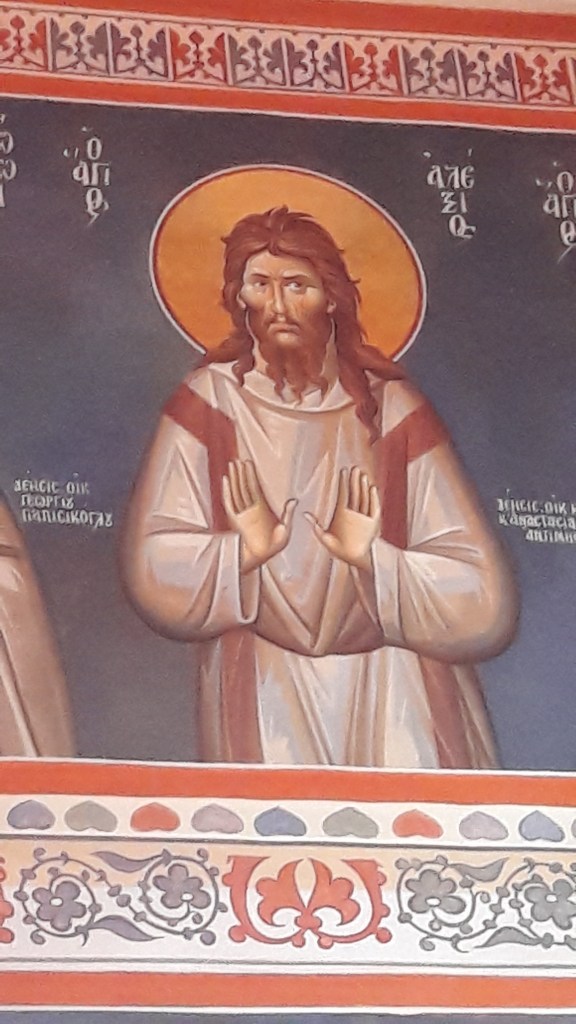 Ο Όσιος Αλέξιος, τοιχογραφία στον Ι.Ν. Ζωοδόχου Πηγής στο Δρακόνερο Μυλοποτάμου