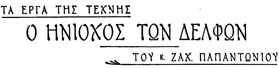 Όπως το δέντρο όταν νοιώθη την παρακμή του πετά ορμητική και άφθονη άνθησι, η αρχαϊκή τέχνη ετοίμασε τον αποχαιρετισμό της σε λίγα έργα στα οποία τα αρχαϊκά στοιχεία συγκεντρώθηκαν κι έδωκαν το απροχώρητο του θελγήτρου των, αφήνοντας στην ψυχή των φίλων της τέχνης συναίσθημα που αν δεν είνε θαυμασμός είνε χαρμόσυνη ταραχή κι ευδαιμονία.