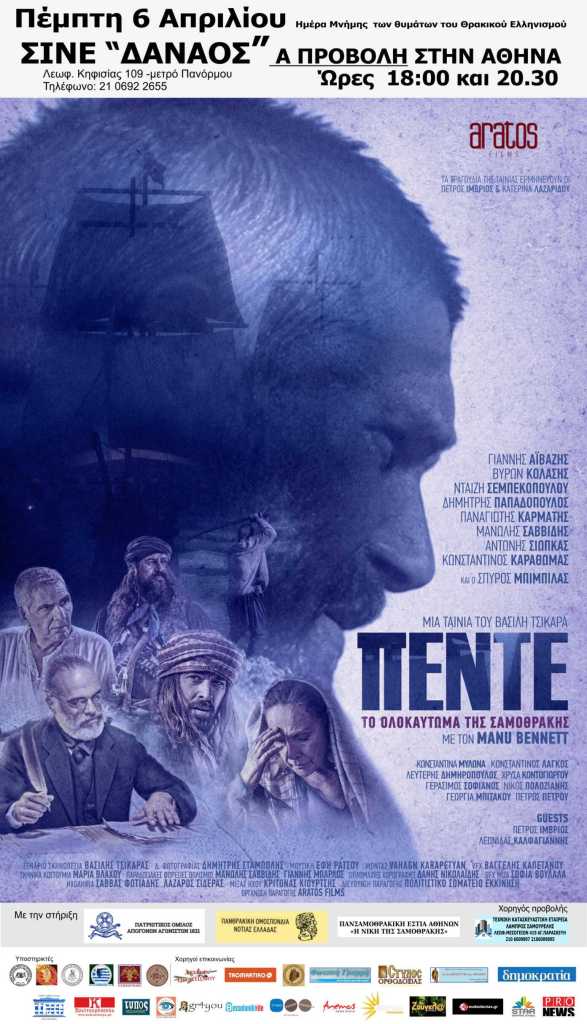 Βασισμένη στον βίο των αγίων πέντε νεομαρτύρων της Σαμοθράκης είναι η ταινία «Πέντε 5» του Βασίλη Τσικάρα που ήρθε να ολοκληρώσει την τριλογία του σεναριογράφου – σκηνοθέτη για την ελληνική Επανάσταση, μετά τις ταινίες «Έξοδος 1826» και «Πολιορκία». Το «Πέντε 5» παρουσιάζει τα αληθινά γεγονότα που διαδραματίστηκαν κατά το Ολοκαύτωμα της Σαμοθράκης, τον Σεπτέμβριο του 1821. Η επίσημη πρώτη προβολή της ταινίας έγινε στον κινηματογράφο «Δαναό» στην Αθήνα, την Πέμπτη 6 Απριλίου, ημέρα της Επετείου Μνήμης των θυμάτων της γενοκτονίας του Θρακικού Ελληνισμού και ημέρα που μαρτύρησαν οι Άγιοι πέντε νεομάρτυρες της Σαμοθράκης.