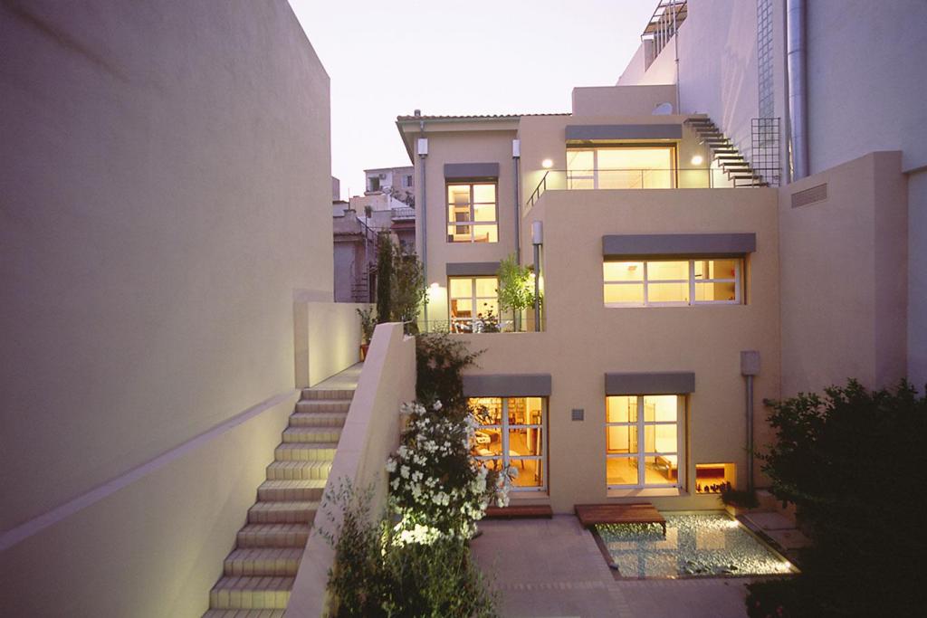 Μπορεί να είναι από τις λιγότερο προβεβλημένες δημιουργίες του Αλεξ. Τομπάζη, όμως δεν παύει ν’ αποτελεί ένα σημείο αναφοράς για την ομορφιά, την κομψότητα και την πνευματικότητα που μπορεί να αποπνέει μία δομική κατασκευή, ακόμα και μέσα στο τόσο επιβαρυμένο περιβάλλον μιας γειτονιάς κοντά στο κέντρο της Αθήνας. Το έργο αποτελεί το αποτέλεσμα της αποκατάστασης παλαιάς διατηρητέας προπολεμικής μονοκατοικίας, σε μια περιοχή (Κεραμεικός) που, παρά το κτίσιμο πολλών πλέον πολυκατοικιών και τη διείσδυση υπερτοπικών κινήσεων και χρήσεων, διατηρεί ακόμη σε μεγάλο βαθμό τον χαρακτήρα της. Σε αυτό το πνεύμα κινήθηκε η μελέτη επικεντρώνοντας τη σύνθεση γύρω από μία μικρή αλλ’ εξαιρετικά επιμελημένη αυλή με πλακόστρωτο, φύτευση και νερό, μια πραγματική όαση που πλαισιώνεται από μια διώροφη προσθήκη, στο βάθος του οικοπέδου που αναπτύσσεται -και αυτή- πάνω στα ίχνη παλαιότερης κατασκευής, και τις όμορες υψηλότερες οικοδομές.