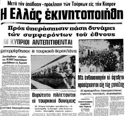 Είναι τρομερό από πόσες διαφορετικές συναισθηματικές εντάσεις και καταστάσεις μπορεί να περάσει ο άνθρωπος μέσα σε λίγες ημέρες ή και ώρες… Η ζωή στην Ελλάδα ξαναπήρε τον φαινομενικά καθιερωμένο ρυθμό της, αυτόν που είχε επιβάλει επί χρόνια η Απριλιανή δικτατορία, μόνο που τώρα πια στα ατέλειωτα κρίματά της είχε προστεθεί και η ανείπωτη τραγωδία της Κύπρου. Της Κύπρου που θυσιάστηκε μέσα από τα φρικώδη εγκλήματα που έφερε η τουρκική εισβολή και κατοχή, με τις χιλιάδες των αγνοουμένων παιδιών της, των νεκρών στα πεδία των μαχών εκείνων των ημερών, των εκπατρισμένων Ελληνοκυπριών που ξεριζώθηκαν βίαια από τις υπερχιλιετείς πατρογονικές εστίες τους, που βίωσαν και εξακολουθούν να βιώνουν το πιο σκληρό και άδικο καθεστώς που διατηρείται προκλητικά έως και σήμερα, αποτελώντας τη μεγαλύτερη ντροπή της ανθρωπότητας και όνειδος για την παγκόσμια «πολιτισμένη» κοινότητα.