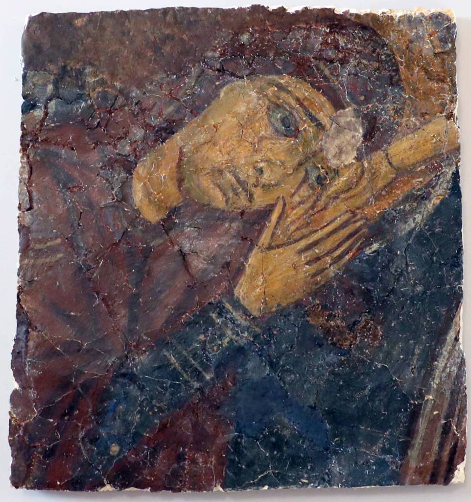 Σπάραγμα της περίφημης τοιχογραφίας της Αποκαθήλωσης του Χριστού από την Παναγία Αψινθιώτισσα στο κατεχόμενο Συγχαρί. Η τοιχογραφία είχε αποκολληθεί και διακινηθεί παράνομα στο εξωτερικό μετά τη λεηλασία του ναού από τις τουρκικές δυνάμεις εισβολής και κατοχής. Επαναπατρίστηκε το 2014 με συντονισμένες ενέργειες της Κυπριακής Δημοκρατίας και του Οργανισμού Walk of Truth (kathimerini.com.cy) (cyprustimes.com)
