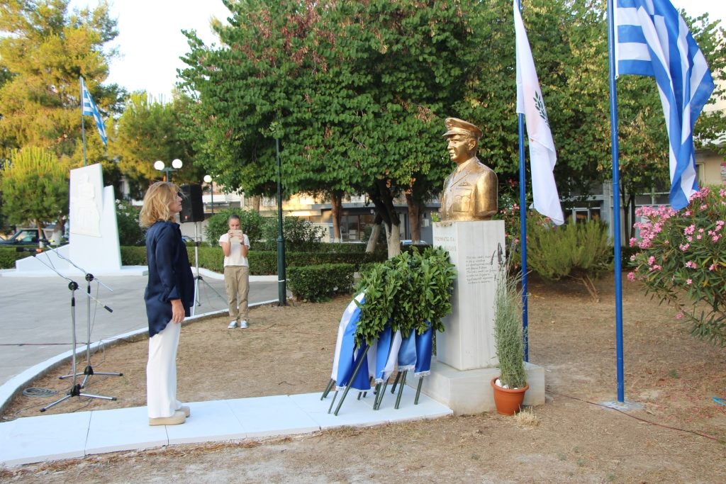 Η Μαρία Καλμπουρτζή μπροστά στις προτομές του ήρωα πατέρα της, σε Κύπρο και Ελλάδα